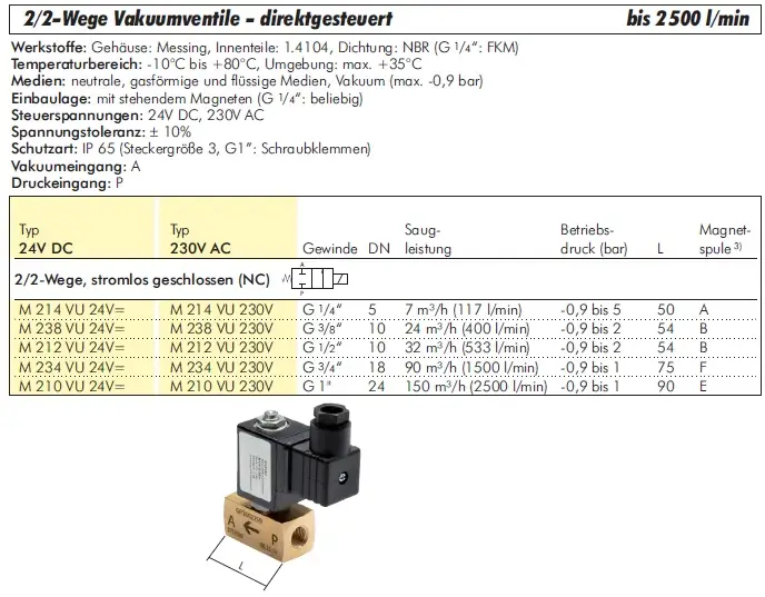 Direktgesteuerte 2/2-Wege Vakuumventile, bis 2500 l/min, alle Größen. Präzise, leistungsstark und zuverlässig für industrielle Vakuum- und Pneumatik-Anwendungen.