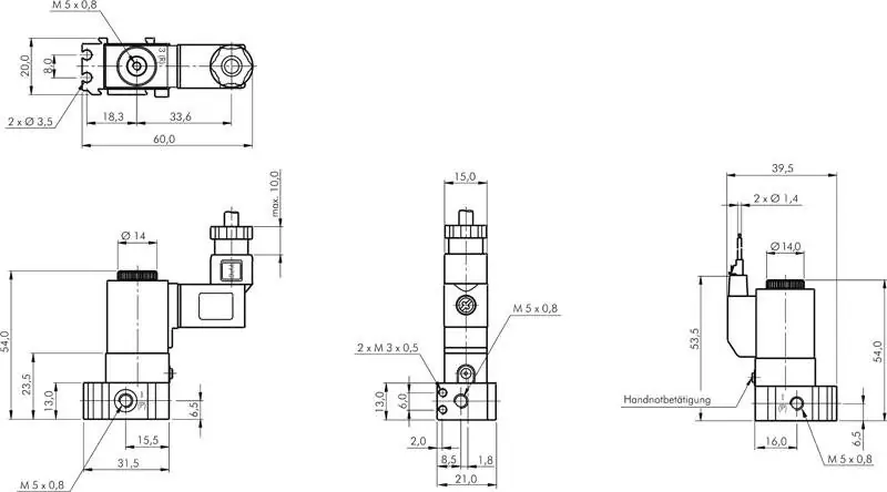 Das 3/2-Wege Magnetventil mit Federrückstellung M5 steuert Pneumatikzylinder zuverlässig und kompakt.