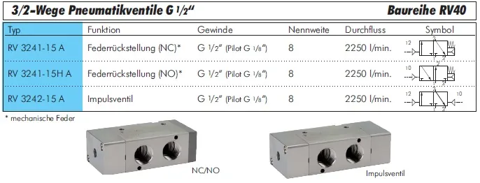 Die 3/2-Wege Pneumatikventile G 1/2" der Baureihe RV40 von E-MC bieten eine zuverlässige und präzise Steuerung pneumatischer Systeme.