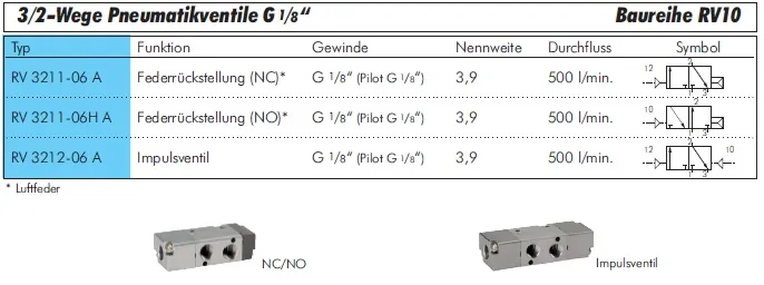 Die 3/2-Wege Pneumatikventile G 1/8" der Baureihe RV10 von E-MC bieten eine zuverlässige und präzise Steuerung pneumatischer Systeme.