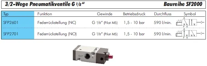 Die 3/2-Wege Pneumatikventile G 1/8" der Baureihe SF2000 von YPC bieten eine zuverlässige und präzise Steuerung pneumatischer Systeme.