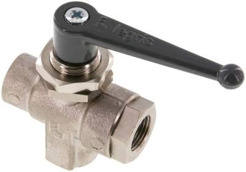 Kompakte 3-Wege T-Kugelhähne Messing vernickelt – langer Griff für Schalttafeleinbau, PN 20, alle Größen