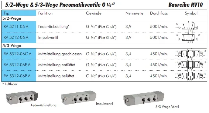 Die 5/2-Wege und 5/3-Wege Pneumatikventile G 1/8" der Baureihe RV10 von E-MC bieten eine zuverlässige und präzise Steuerung für pneumatische Systeme.