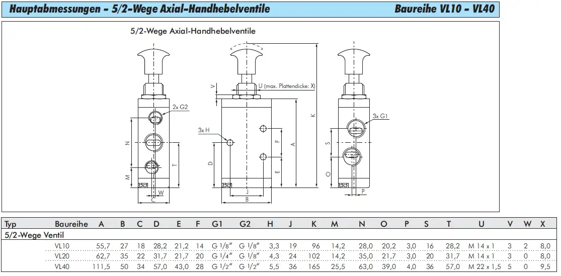 Die 5/2-Wege Axial-Handhebelventile der Baureihe VL von E-MC bieten eine zuverlässige manuelle Steuerung für pneumatische Anwendungen.