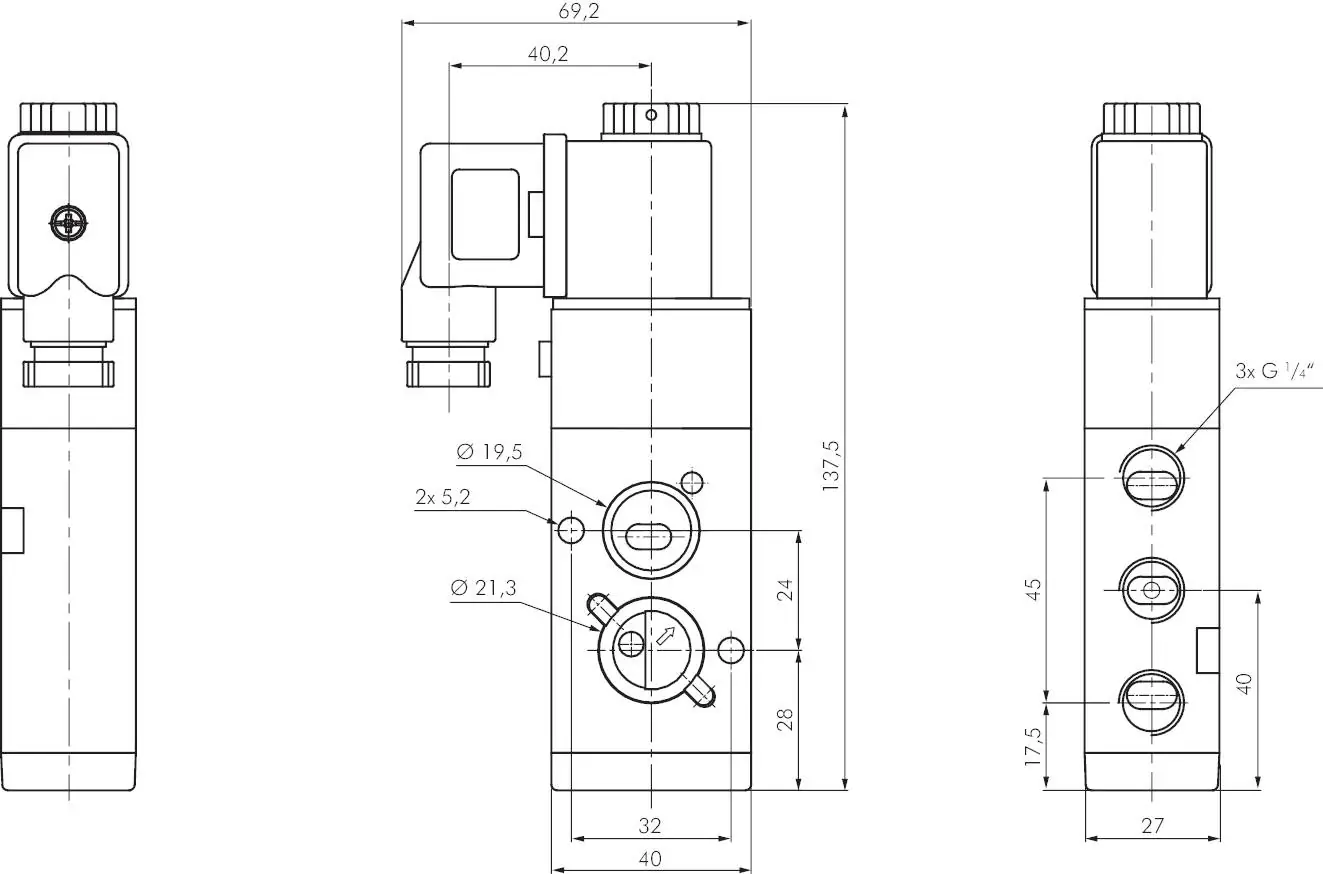 5/2-Wege NAMUR-Magnetventil G 1/4", V30 Baureihe. Zuverlässige Pneumatikventile für Industrie, Automatisierung und Maschinenbau.