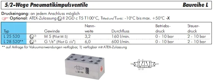 Die 5/2-Wege Pneumatikimpulsventile der Baureihe L von AIRTEC ermöglichen eine präzise und schnelle Steuerung pneumatischer Systeme durch Impulsbetätigung.