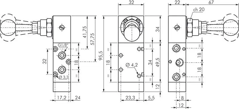 Dank robuster Bauweise und langlebiger Materialien sind die Ventile für Dauereinsatz in industriellen Anwendungen geeignet. Die kompakte Bauform ermöglicht die einfache Integration in Bedienpulte, Maschinenmodule oder Montageplätze, ideal für Fertigungslinien und manuelle Pneumatiksteuerungen.