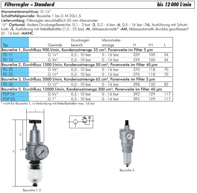 Ausführung: Druckregler rücksteuerbar (mit Sekundärentlüftung) mit zusätzlicher Filterung durch Zentrifugalprinzip und Sinterfilter