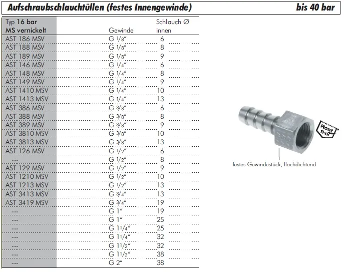 Hochdruck-Aufschraubschlauchtüllen aus Messing vernickelt bis 40 bar