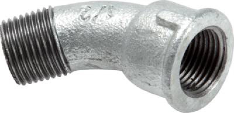 Preview: Feuerverzinkter 45 Grad Bogen aus Temperguss mit Innen- und Außengewinde (IG/AG)