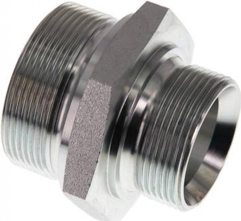 Doppelnippel aus Stahl verzinkt, Zollgewinde, 60° Universaldichtkegel, bis 400 bar, alle Größen