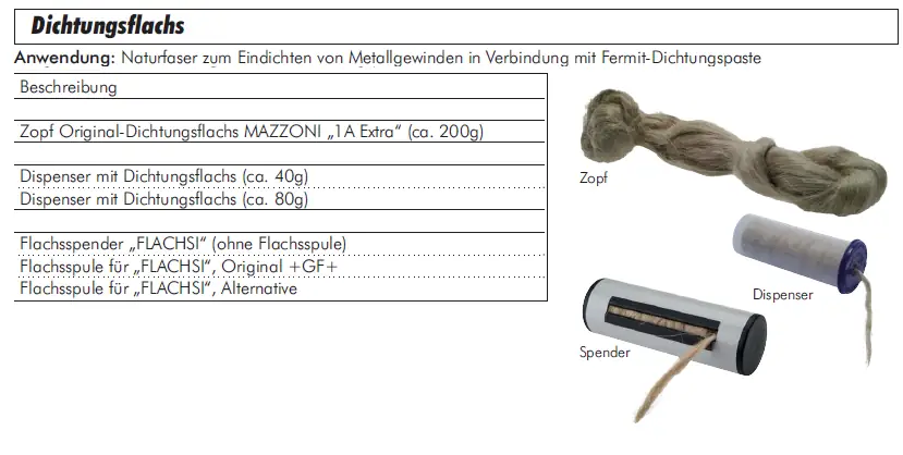 Anwendung: Naturfaser zum Eindichten von Metallgewinden in Verbindung mit Fermit-Dichtungspaste