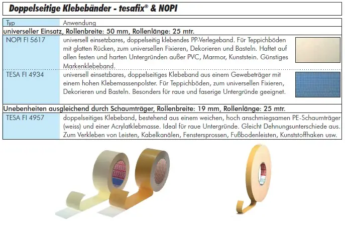 tesafix® & NOPI® Doppelseitige Klebebänder – Starke Haftung für Montage und Verlegung