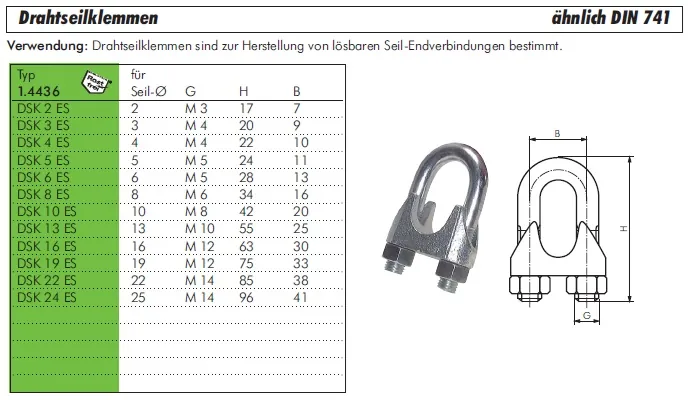 Verwendung: Drahtseilklemmen sind zur Herstellung von lösbaren Seil-Endverbindungen bestimmt.