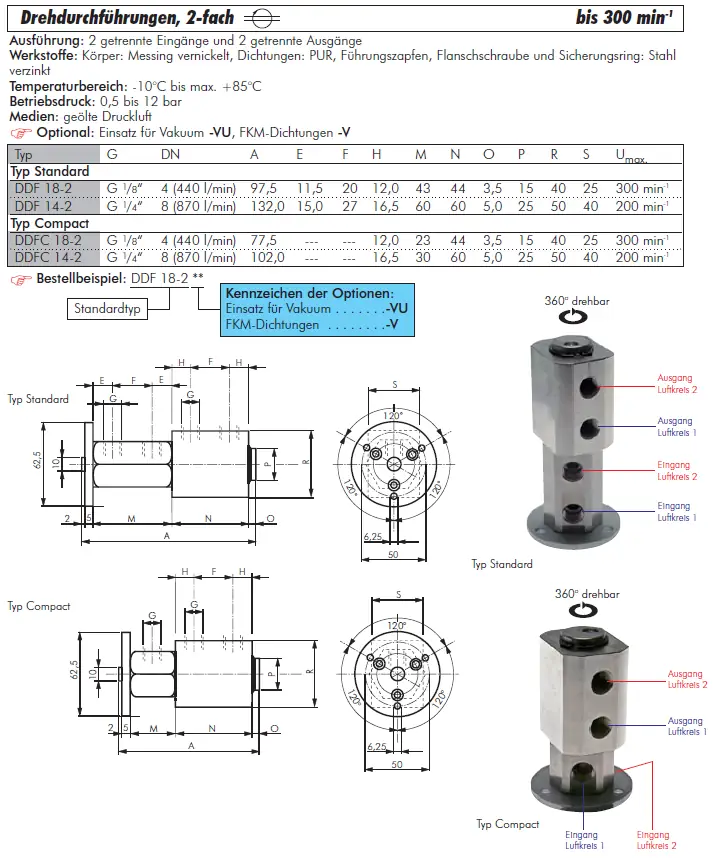Drehdurchführungen, Messing vernickelt, 2-fach, bis 300 min-1, alle Größen