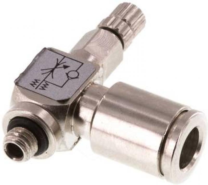 Dieses IQS Drosselrückschlagventil der Serie MSV ermöglicht die exakte Einstellung der Kolbengeschwindigkeit von Pneumatikzylindern in eine Richtung. Die Rändelschraube erlaubt eine einfache, werkzeuglose Justierung des Luftstroms von Hand. In die Gegenrichtung ist der Luftstrom ungedrosselt (Rückschlagventil-Funktion). Die robuste Bauweise aus vernickeltem Messing sorgt für hohe Langlebigkeit im industriellen Einsatz.