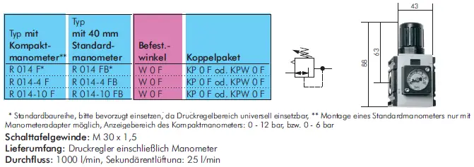 Der Druckregler überzeugt durch eine geringe Druckhysterese und ein hervorragendes Durchflussverhalten. Der arretierbare Druckeinstellknopf schützt vor unbeabsichtigten Änderungen der Parameter und sorgt für Prozessstabilität in Ihrer Fertigung. Durch das modulare Montagesystem lässt sich die Baureihe 0 nahtlos in bestehende Wartungseinheiten integrieren oder als Einzelkomponente verwenden.