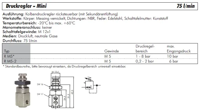 Kompakter Mini-Druckregler – Präzise Regelung für geringe Durchflussmengen bis 75 l/min
