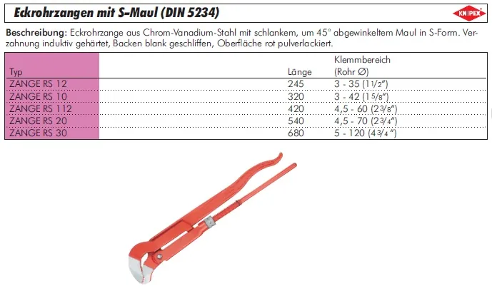 Typ: Eckrohrzange mit S-Maul