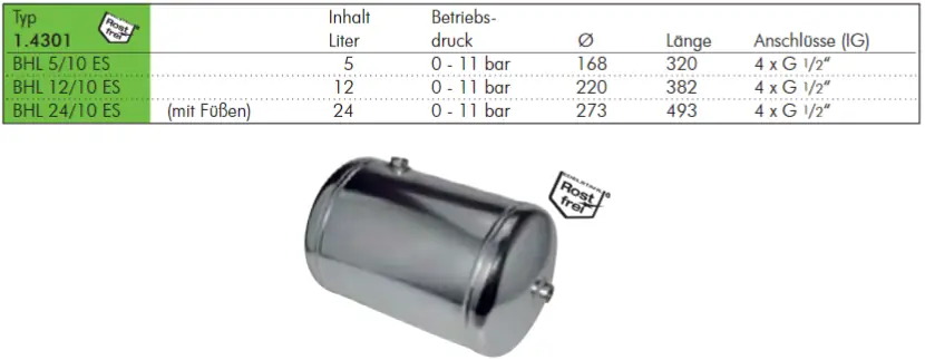 Druckluftbehälter, Edelstahl 1.4301, PN 11, verschiedene Größen