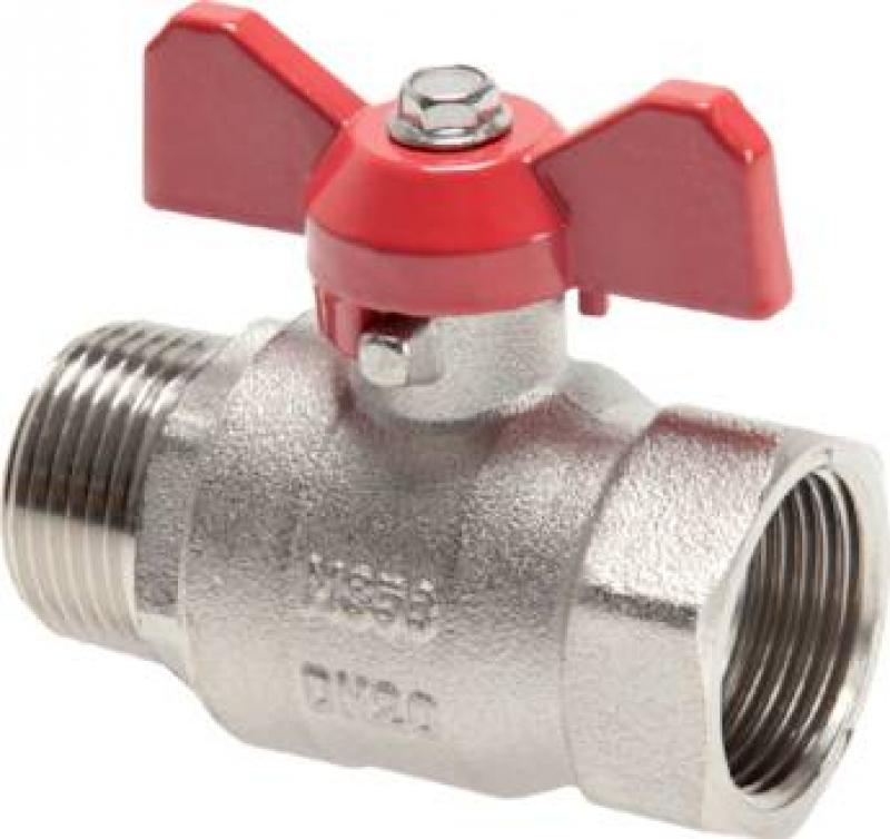 Preview: Einschraub-Kugelhähne 2-teilig Messing vernickelt – IG/AG, voller Durchgang, PN 25 (Eco-Line), alle Größen