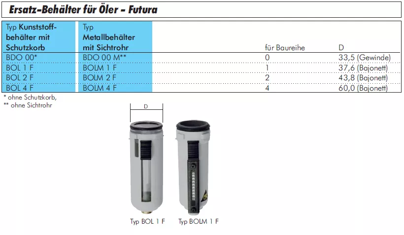 Unsere Ersatz-Behälter sind exakt auf die Anforderungen der Futura-Öler zugeschnitten: