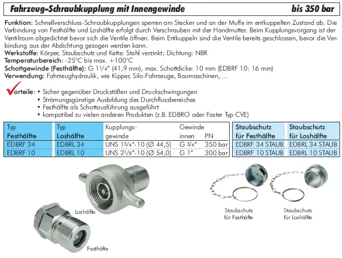 Im Gegensatz zu einfachen Steckkupplungen bietet der Schraubmechanismus maximale Sicherheit gegen ungewolltes Trennen bei Vibrationen und Druckspitzen, wie sie in mobilen Anwendungen häufig vorkommen. Gefertigt aus verzinktem Stahl, widerstehen sie Korrosion und garantieren eine lange Lebensdauer. Viele dieser Kupplungen sind zudem flachdichtend (Flat-Face nach ISO 16028), was das Austreten von Öl beim Kuppeln minimiert und die Umwelt schont.