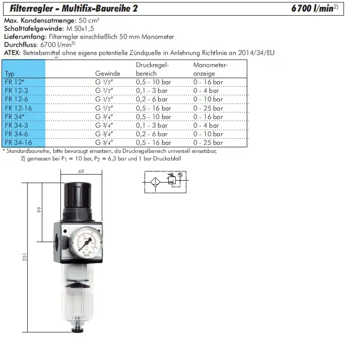 Filterregler Multifix Baureihe 2, 6700 l/min, alle Ausführungen