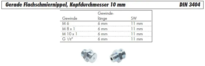 Flachschmiernippel DIN 3404 gerade – Ideal für beengte Platzverhältnisse und ältere Maschinen