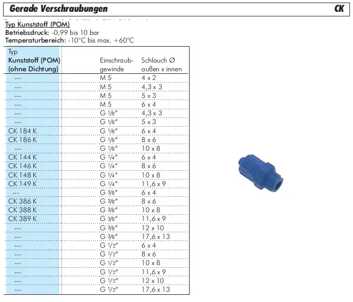 Die gerade CK-Einschraubverschraubung aus POM mit zylindrischem Gewinde ist eine robuste Lösung für zuverlässige pneumatische Verbindungen, insbesondere bei anspruchsvollen technischen Rahmenbedingungen.