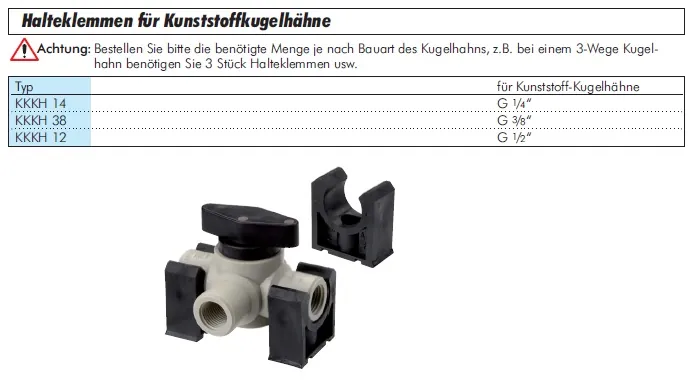 Kunststoffkugelhahn Halteklemmen – stabile Fixierung und einfache Montage, alle Größen
