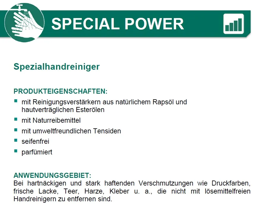 Für die kompromisslose Handreinigung bei extrem hartnäckigen Verschmutzungen: Die LORDIN® SPECIAL POWER Handwaschpaste ist eine Speziallösung mit wirksamen Lösemitteln (bitte Sicherheitshinweise beachten), die selbst Substanzen entfernt, an denen Standardpasten scheitern.
