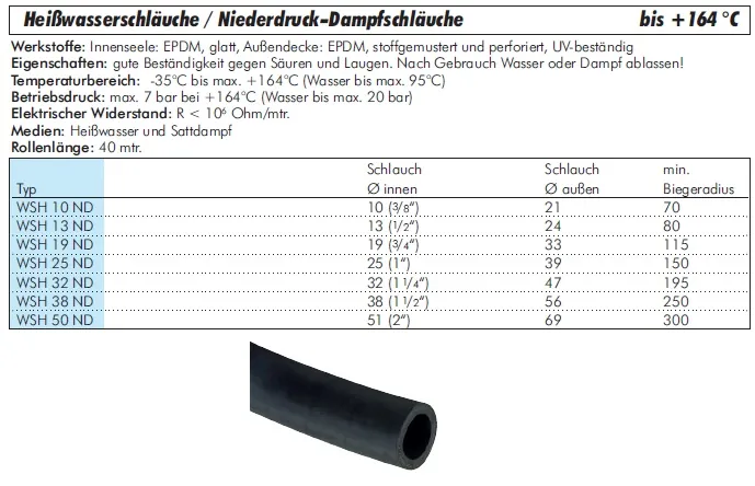 Der Heißwasserschlauch / Niederdruck-Dampfschlauch als Meterware ab 1 m ist flexibel, langlebig und hitzebeständig bis +164 °C.