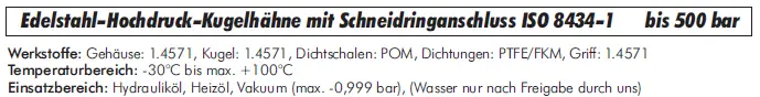 Hochdruck Kugelhahn aus Edelstahl 1.4571 für extreme Druckanwendungen mit Schneidringanschluss