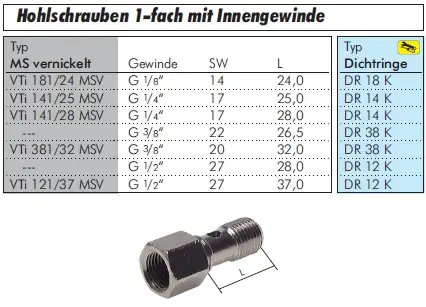 Robuste 1-fach Hohlschraube mit Innengewinde – Einzelkomponente ohne Dichtung
