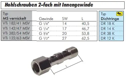 Robuste 2-fach Hohlschraube mit Innengewinde – Einzelkomponente ohne Dichtung