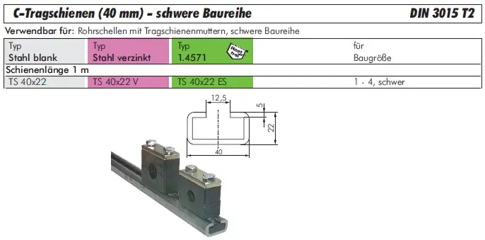 Verwendbar für:Rohrschellen mit Tragschienenmuttern, schwere Baureihe