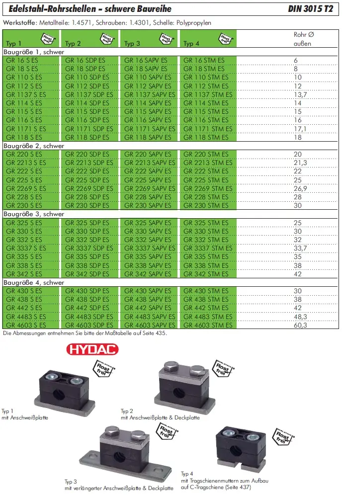 Hydac Edelstahl-Rohrschellen – schwere Baureihe DIN 3015 T2 für Industrie und Maschinenbau
