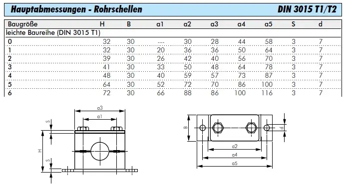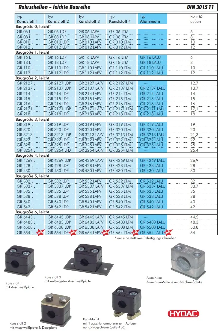 Hydac Rohrschellen der leichten Baureihe gemäß DIN 3015 T1