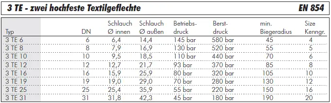 Unser Hydraulikschlauch 3 TE verfügt über zwei hochfeste Textilgeflechte und ist als Meterware erhältlich. Er bietet maximale Flexibilität und Druckbeständigkeit für anspruchsvolle hydraulische Anwendungen in Industrie und Maschinenbau.