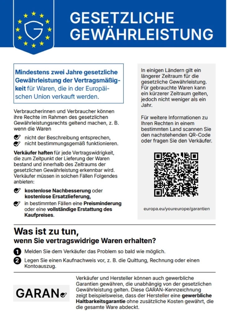 Das Produkt wurde vor dem 13. Dezember 2024 vom Hersteller auf den Markt gebracht und von uns auch schon vor dem 13. Dezember 2024 zum Verkauf angeboten. Es besteht Konformität des Produkts nach Richlinie 2001/95/EG