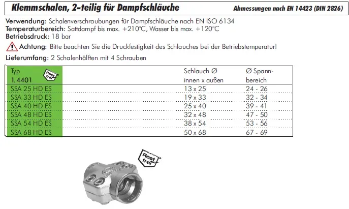 Verwendung: Schalenverschraubungen für Dampfschläuche nach EN ISO 6134