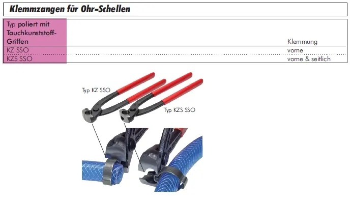 Einsatzbereich: 1‑ und 2‑Ohr‑Schellen, Oetiker‑Schellen