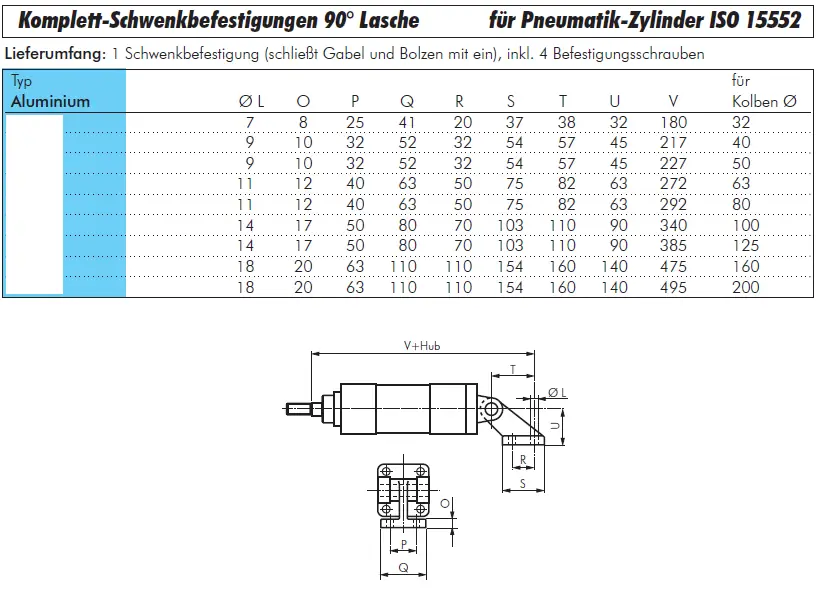 Startseite » Pneumatikzylinder » Befestigungsmaterial für Pneumatikzylinder | ISO 6432, 15552, 21287 » Komplett-Schwenkbefestigungen 90° mit Lasche für Zylinder ISO 15552, alle Größen