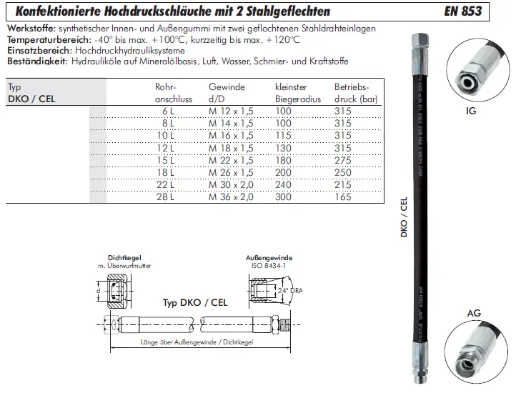 Ideal für Hochdruckhydraulik, Industrieanlagen, Maschinenbau, Werkstätten und alle Anwendungen, die konfektionierte, flexible und druckfeste Hochdruckschläuche mit Innen-/Außengewinde erfordern.