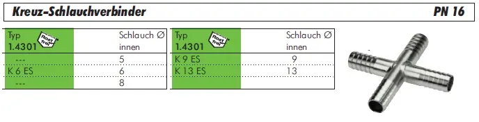 Kreuz-Schlauchverbinder, Edelstahl 1.4301, alle Größen