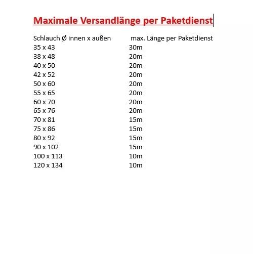 Bitte beachten Sie die maximale Länge für den Versand per Paketdienst