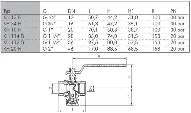 Gehäuse: Messing vernickelt, Kugel: Messing verchromt, Dichtung: PTFE / FKM / NBR, Sieb: 1.4301 / PA, Verschlusskappe: Messing vernickelt