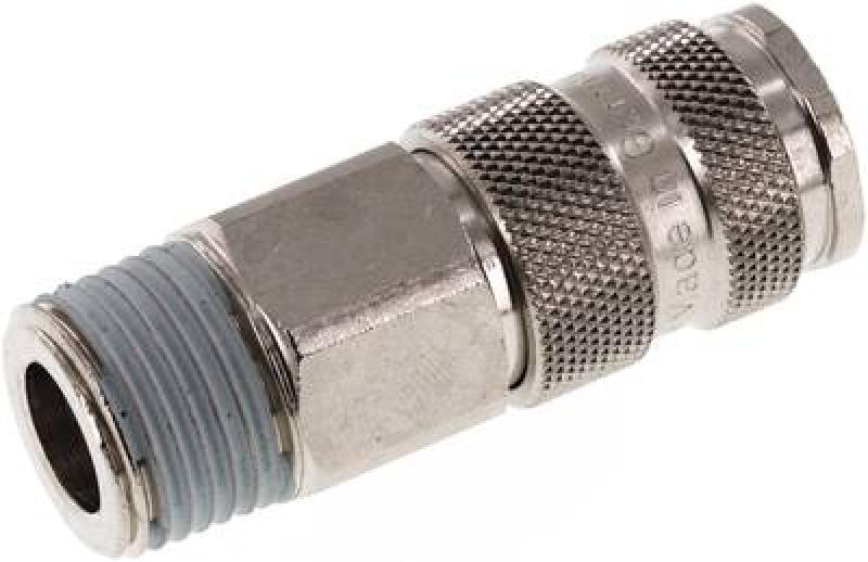 Produkttyp: Schnellkupplungsdose / Kupplungsdose mit Außengewinde und Kugelverriegelung.