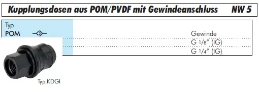 Werkstoffe: Körper: POM schwarz, Federn und Ventil: Edelstahl 1.4310, Dichtungen: NBR